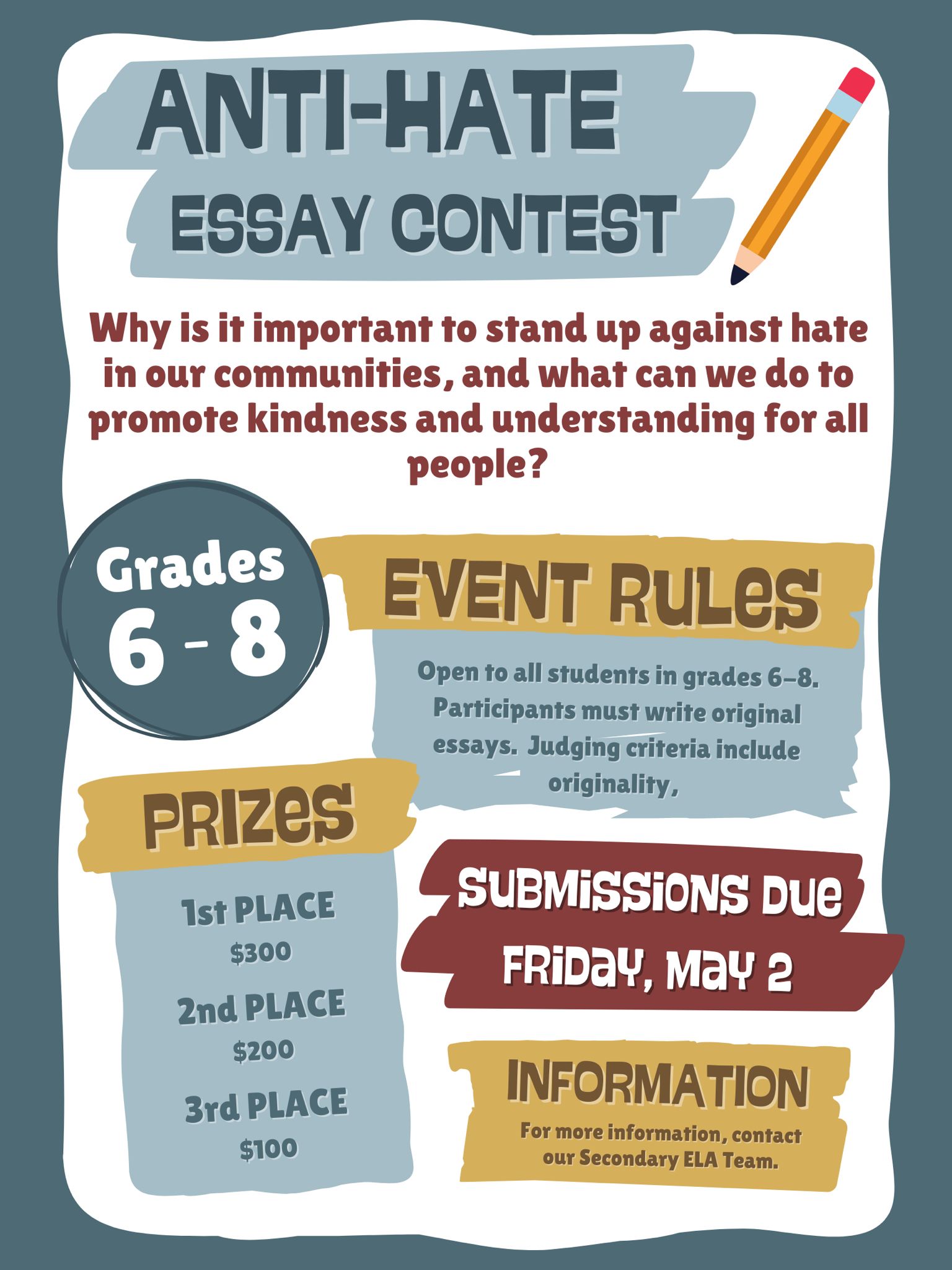 Anti-Hate Essay Contest - Student submissions are in—evaluations are underway. Stay tuned for the big reveal of our winners!